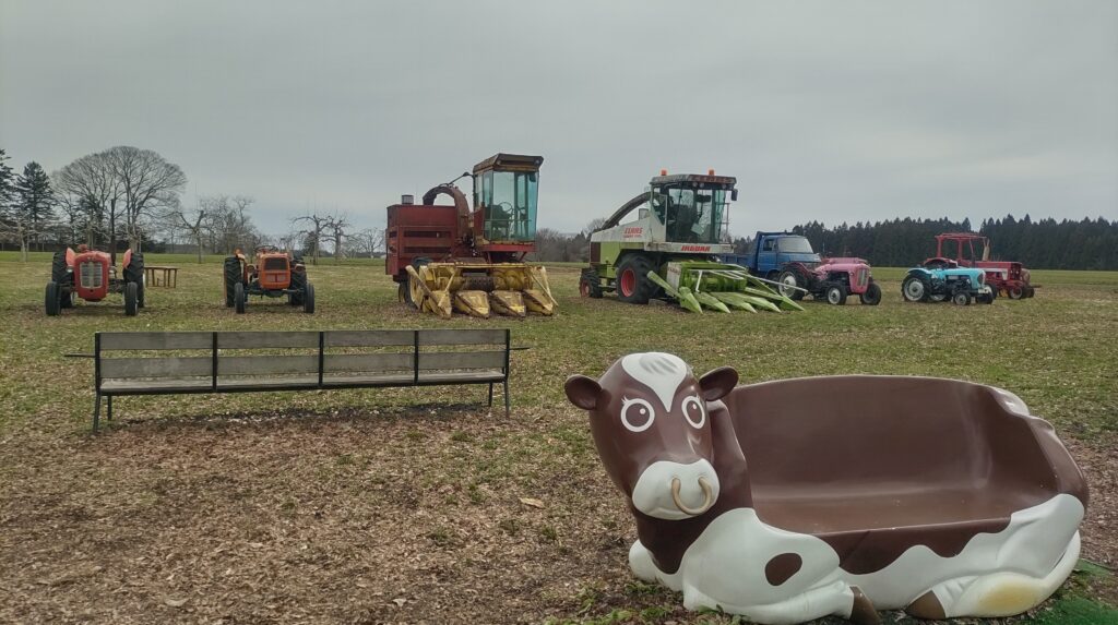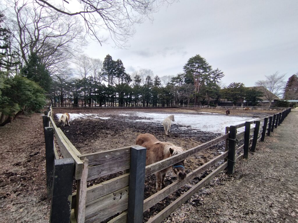 お店の前には休憩スポットや近くにはポニーたちがのびのび走り回っている牧場があります。