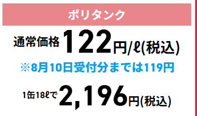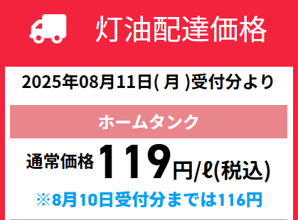 | 価格 | ■ 灯油価格1L119円(税込) |