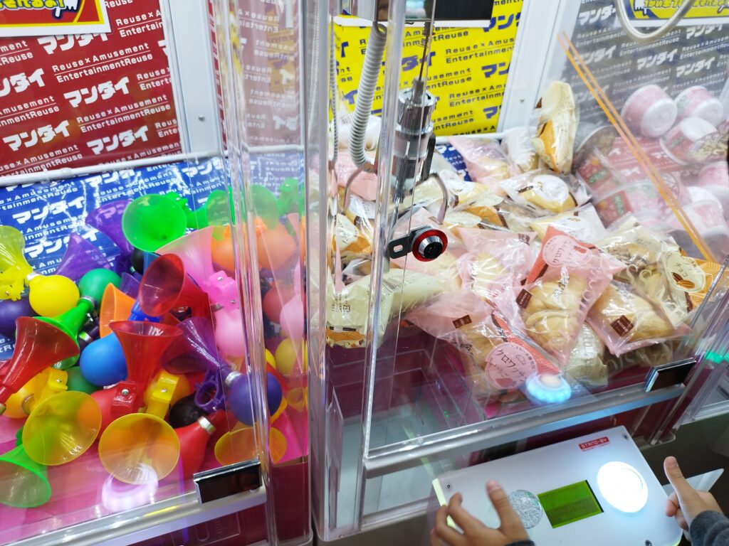 子供は30円のUFOキャッチャーでキーホルダーや、10円キャッチャーでクロワッサンを取ってました。