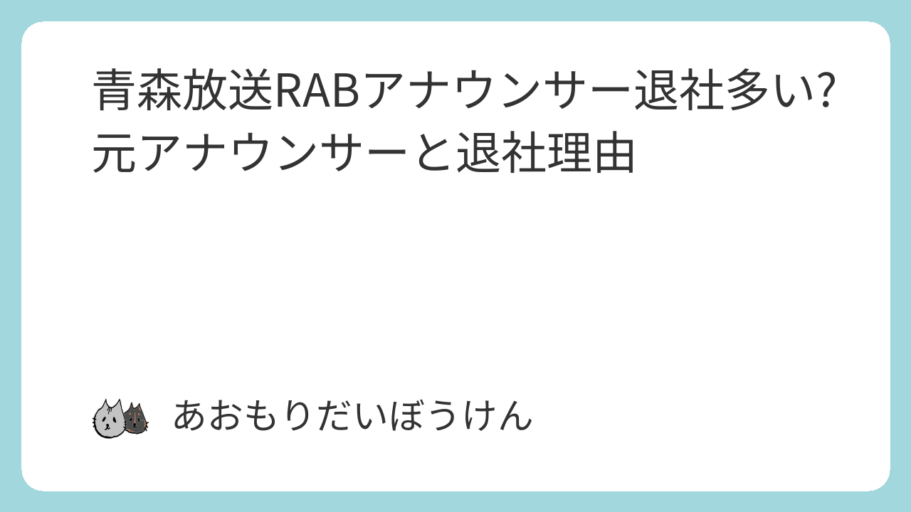青森放送(RAB)から退社した主な元アナウンサーについて、以下の情報があります。