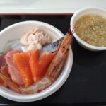ねぶた定食(活ホタテ刺し・ねぶた漬・けの汁・とろろ)2370円