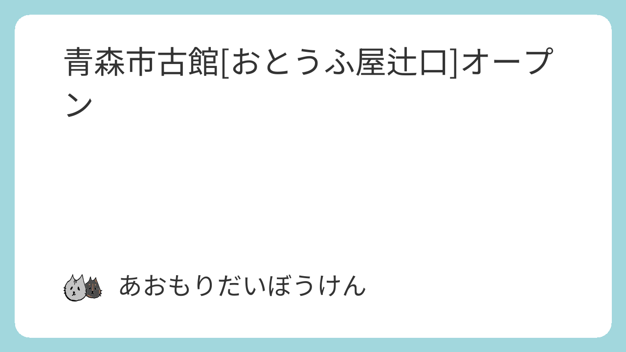 ","location":[{"@type":"Place","name":"㈲辻口商店","address":{"@type": "PostalAddress","streetAddress":"〒030-0946 青森県青森市古館1丁目11−8"}}],"eventStatus":"https://schema.org/EventScheduled"}1310月All Day青森市古館[おとうふ屋辻口]オープン