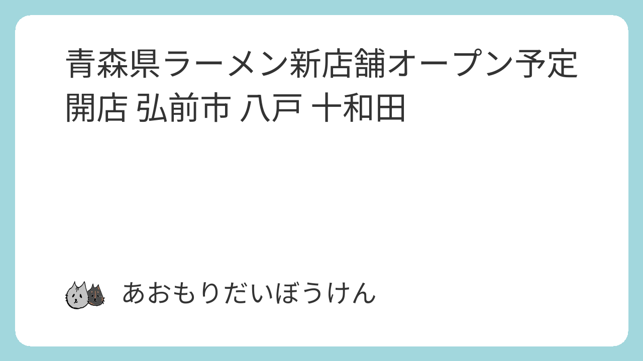 青森市大野に麺道 一休 ラーメン中華そば 麺処 新店オープン