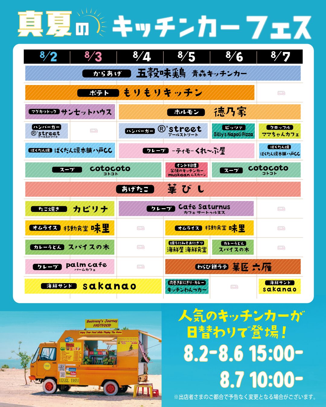 • 出店場所:ガーラタウン A棟1階 109区画(東口前)