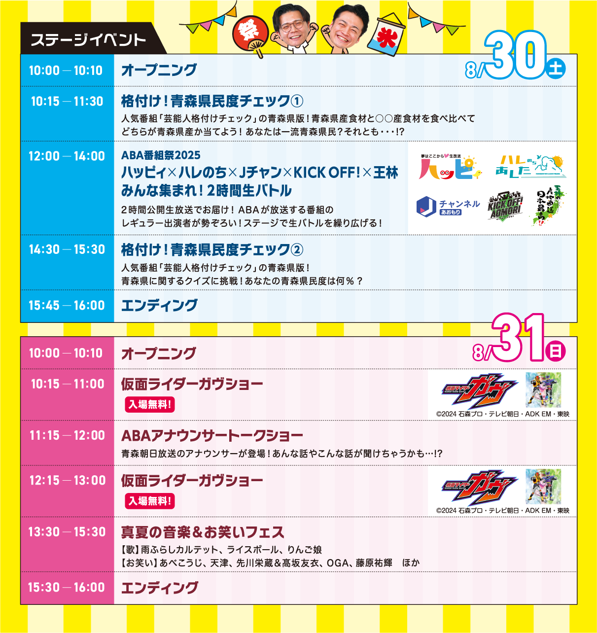 308月(8月 30)10:00 AM31(8月 31)4:00 PM青森市「ABA番組祭」アスパム1・2階&青い海公園