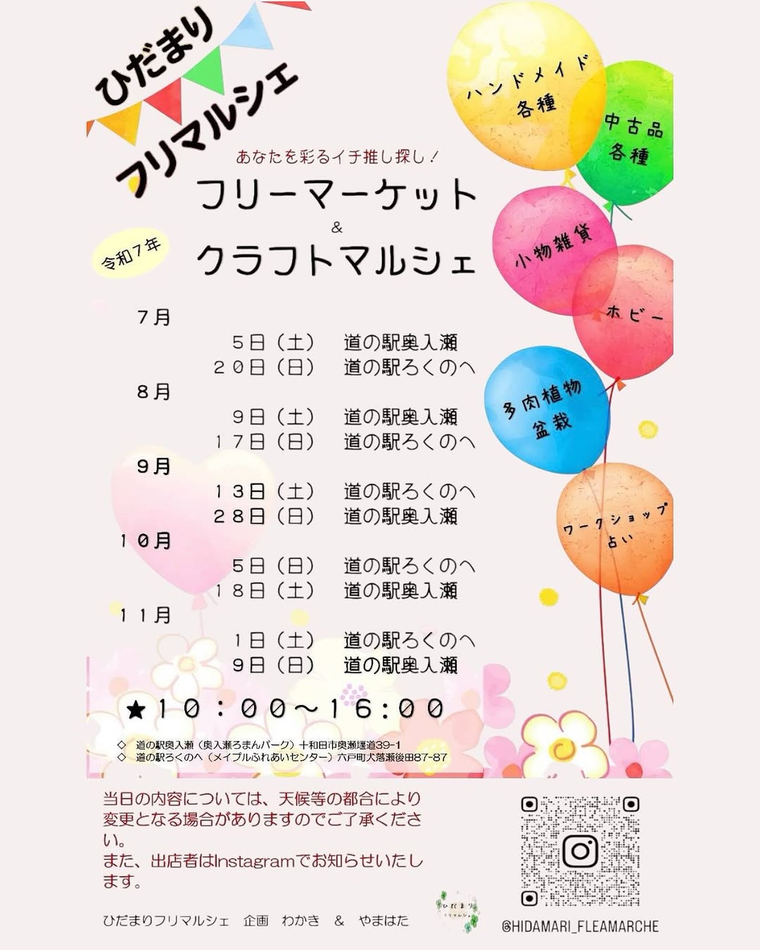 207月10:00 AM4:00 PMRepeating Event六戸町 道の駅ろくのへ「ひだまりフリマルシェ」