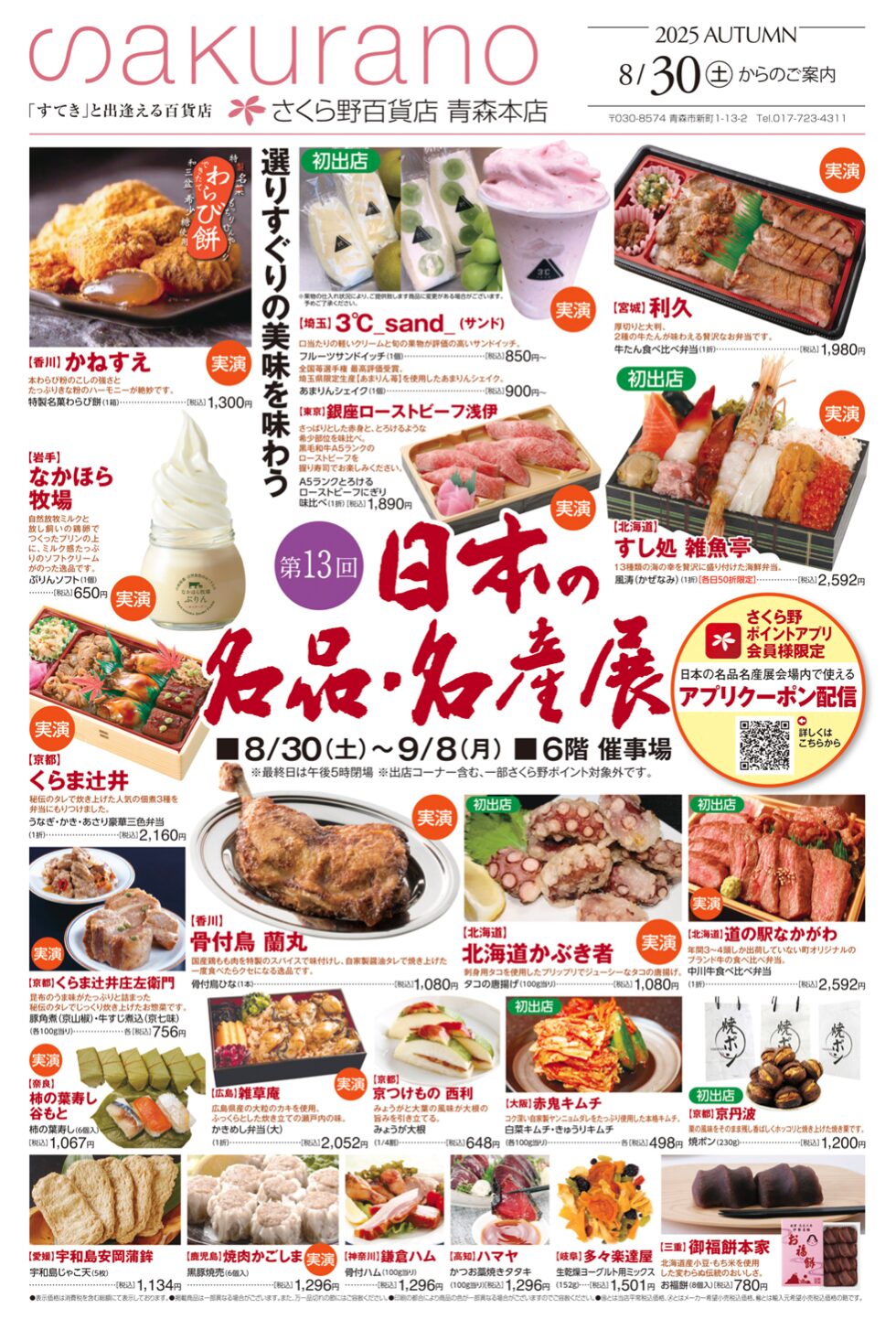 308月(8月 30)10:00 AM089月(9月 8)5:00 PM青森市新町 さくら野百貨店「日本の名品・名産展」
