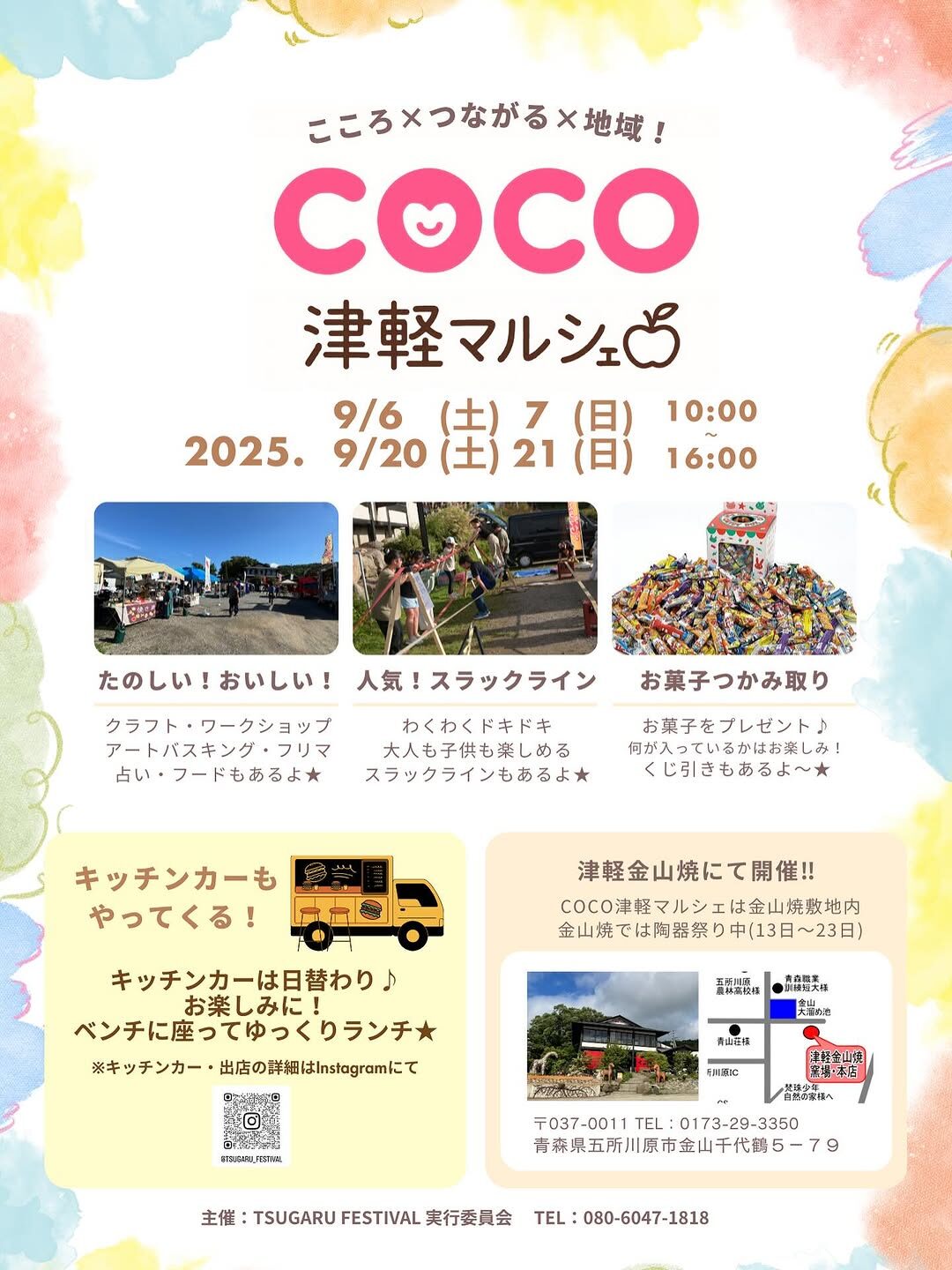 069月(9月 6)10:00 AM07(9月 7)4:00 PMRepeating Event五所川原金山焼「COCO津軽マルシェ」