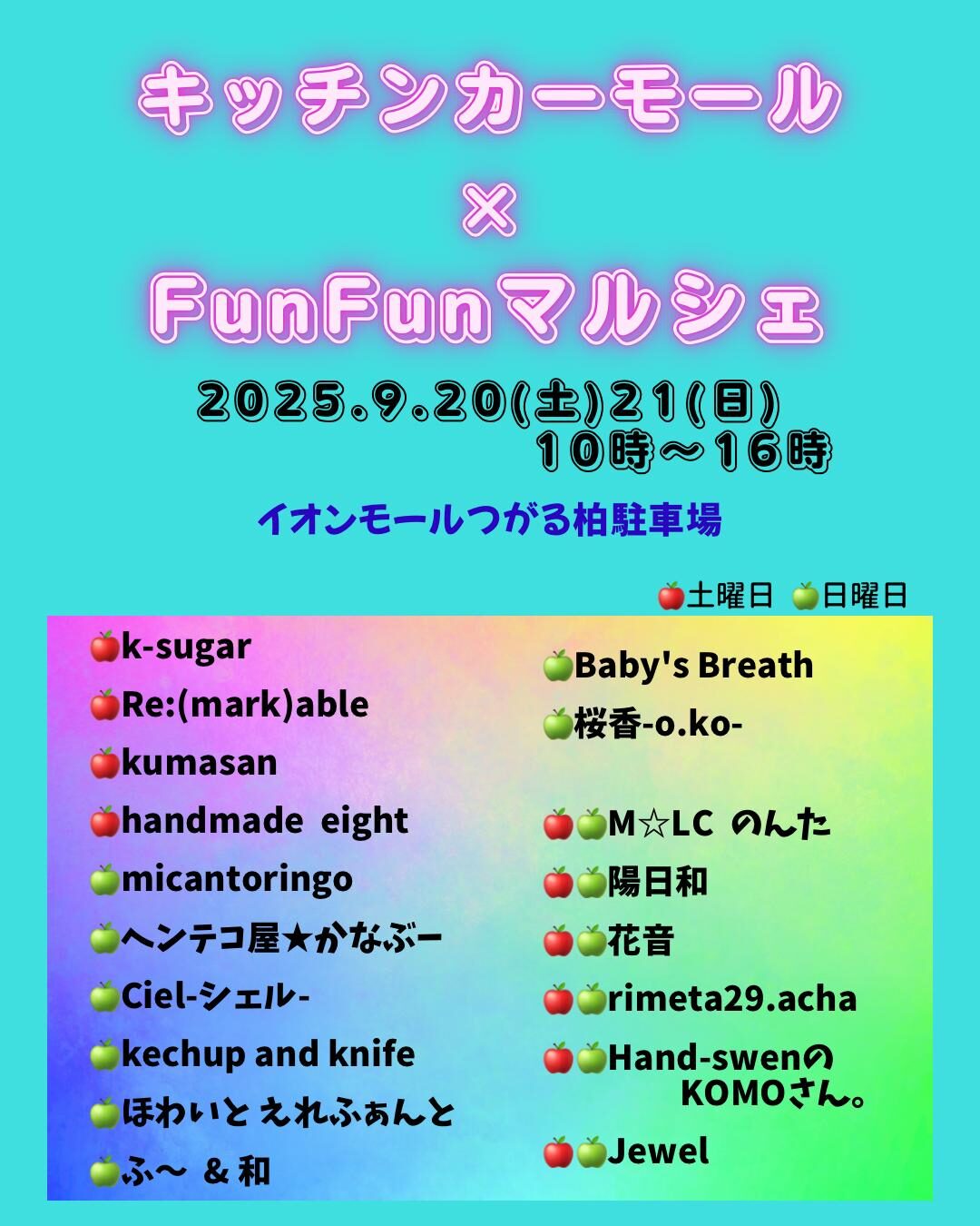 9月のイベント情報✨▶9/6(土),7(日)とわだクラフトフェスタ(十和田市)▶9/13(土),14(日),15(月·祝)&コリドー de マーケット(青森市)※13(土)、15(月·祝)のみ▶9/20(土),21(日)キッチンカーモール×FunFunマルシェ(つがる市)▶9/28(日)東北六彩マルシェ in 福島県(郡山市)よろしくね🙌 pic.twitter.com/mlOnyMHG7H— のんた(◍•ᴗ•◍)✧*。 (@arinontan_yo39) August 28, 2025