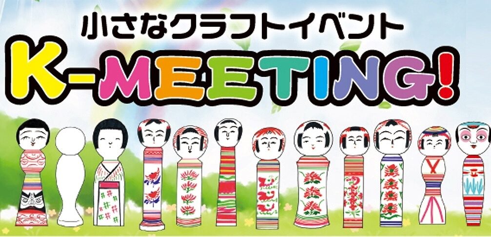 内容:青森県内外で活動中のクラフト作家/販売店/飲食ブースなど約40店舗が津軽こけし館駐車場に大集合!こけしの繋がり「K」の元に集う クラフト&物販/フードイベント K-MEETING!開催!