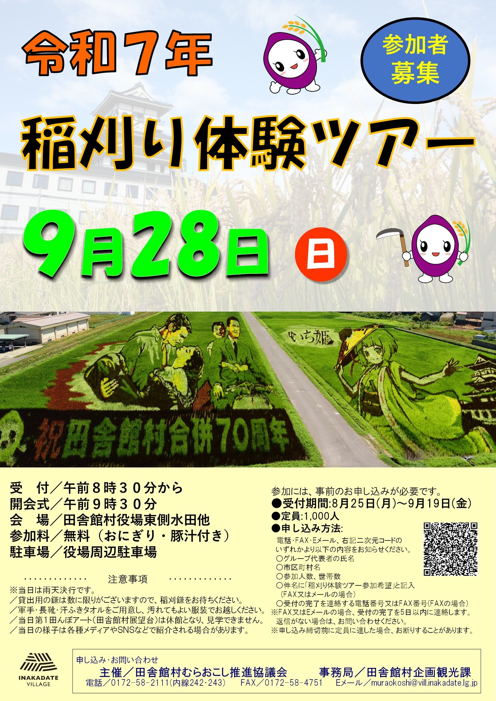 289月All Day田舎館村 田んぼアート「稲刈り体験ツアー」