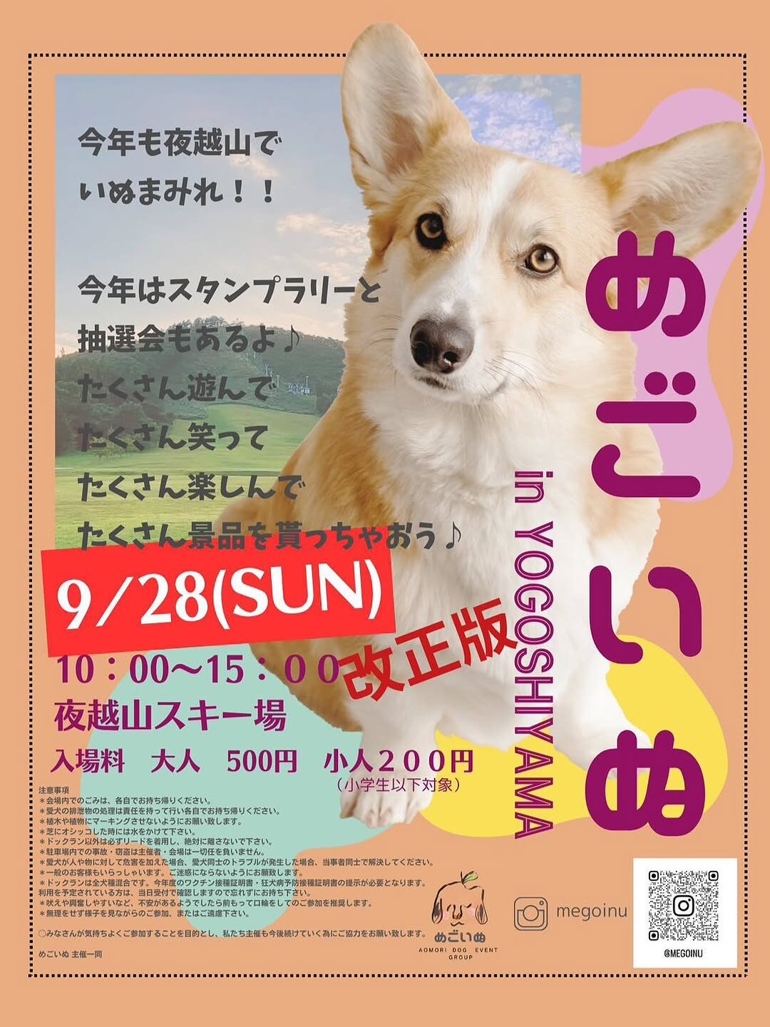 289月10:00 AM3:00 PM平内町 夜越山スキー場「めごいぬinYOGOSHIYAMA」