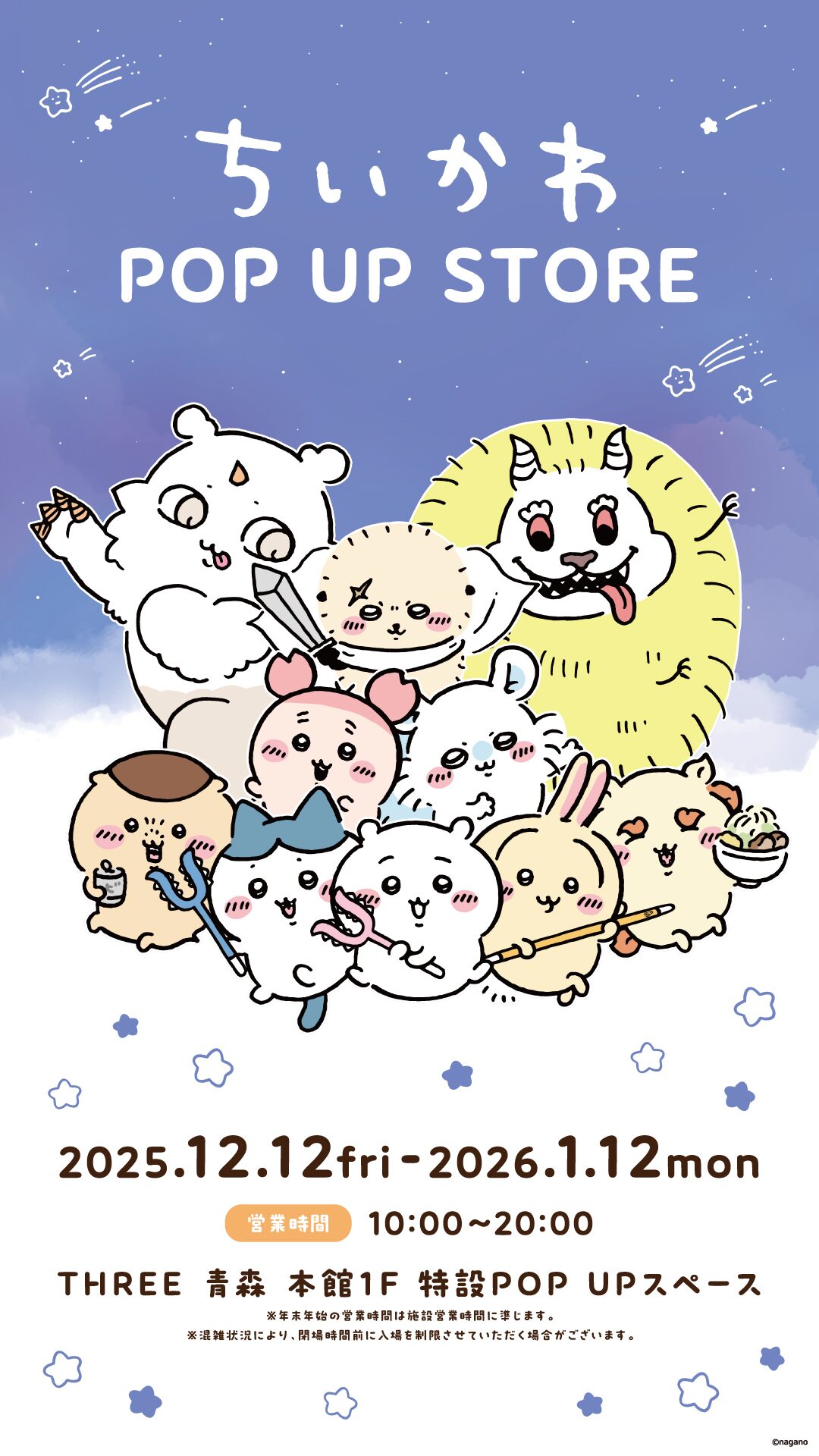 1212月10:00121月20:00青森市THREE[ちいかわ POPUP STORE]
