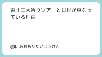 ねぶた 東北三大祭りツアーと日程が重なっている理由 東北三大祭り 日程東北三大祭り(青森ねぶた祭、秋田竿燈まつり、仙台七夕まつり)の2024年の日程は以下の通りです。東北三大祭りの日程(毎年ほぼ同じ)青森ねぶた祭:8月2日~8月7日秋田竿燈まつり:8月... 2025.02.14 2025.12.12 ねぶた